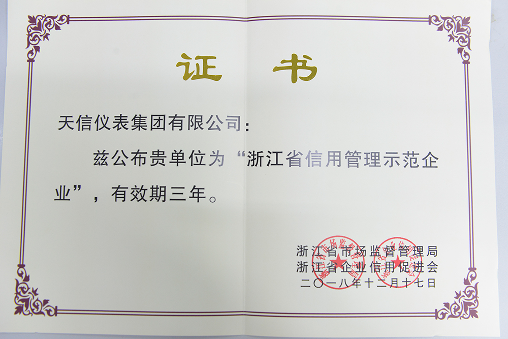 • 年度“浙江省信用管理示范企業”
